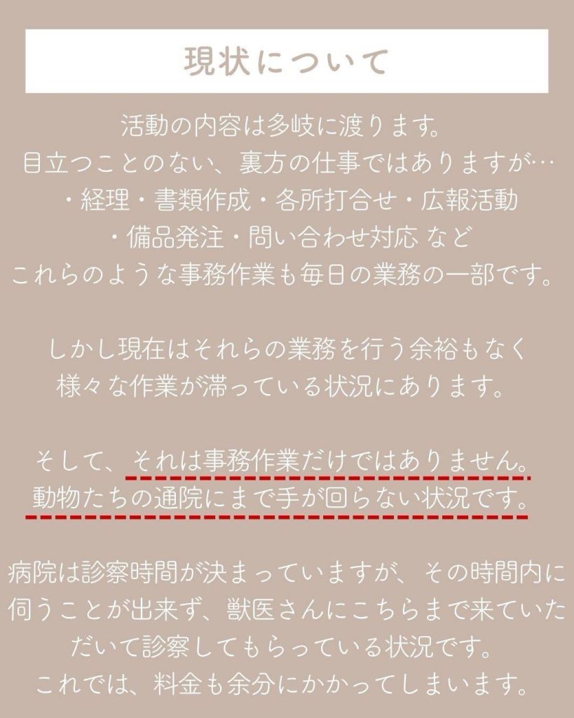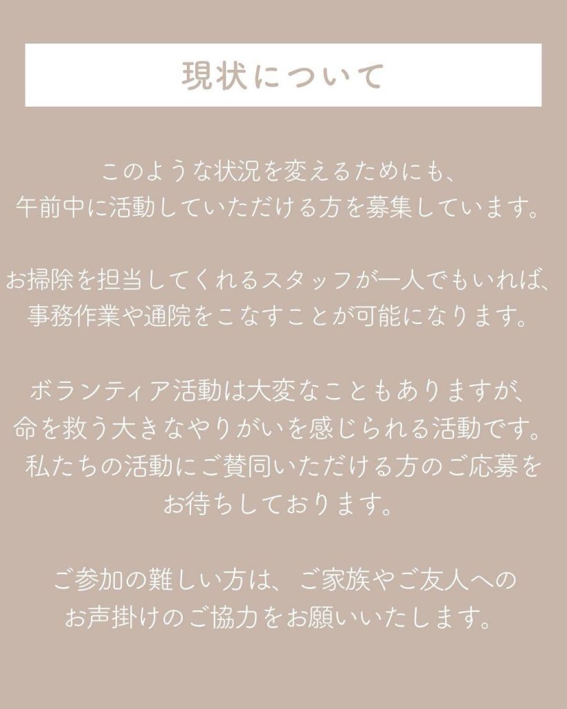 動物たちの快適な空間を作り安心してもらえるためにも、ご協力をいただけると助かります。