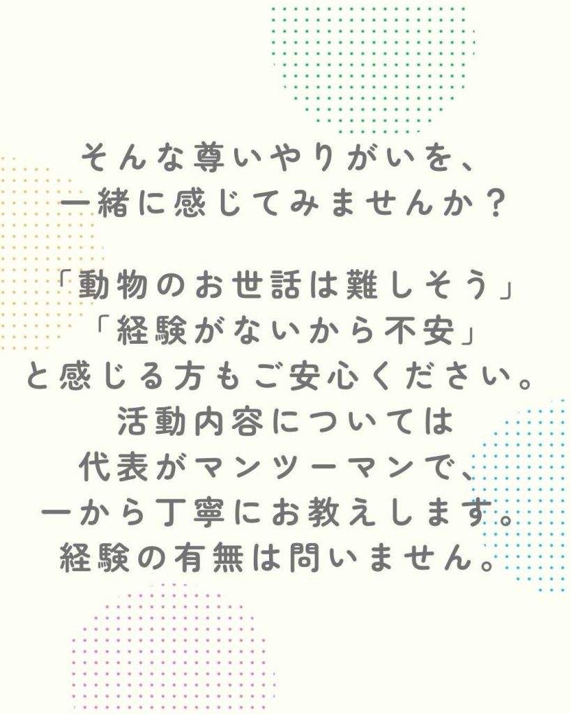 2025.10.14 ブログ スタッフ募集中, ボランティア, ボランティアスタッフ募集中, 上越市, 保護犬, 保護猫, 妙高市, 犬がいる暮らし, 猫がいる暮らし 前回の募集から、1名の方にご応募をいただきました。誠にありがとうございます!!皆様からの温かいお気持ちに感謝しつつも、現状の体制では、保護活動の維持と改善には、依然として手が足りておりません。最低でもあと4名のお力添えが欲しいところです…一刻も早い体制の強化を切望しております。どうか、当施設の活動にご賛同、ご協力いただけますよう、心よりお願い申し上げます。 ご質問・ご要望・メッセージ・問い合わせは、お問い合わせフォームからお願いいたします。 前の記事 2025.10.07 次の記事 記事がありません