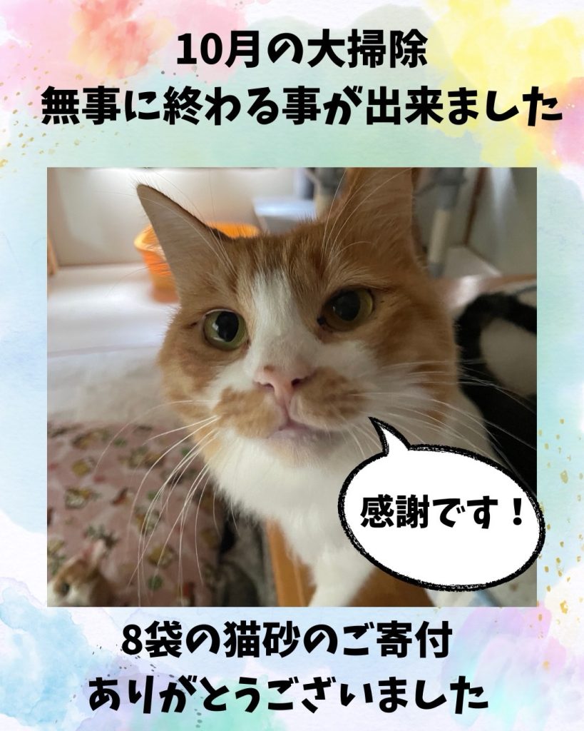 また、今月はご寄付の猫砂と活動資金、岡田の私財でなんとか大掃除を終える事が出来ました。