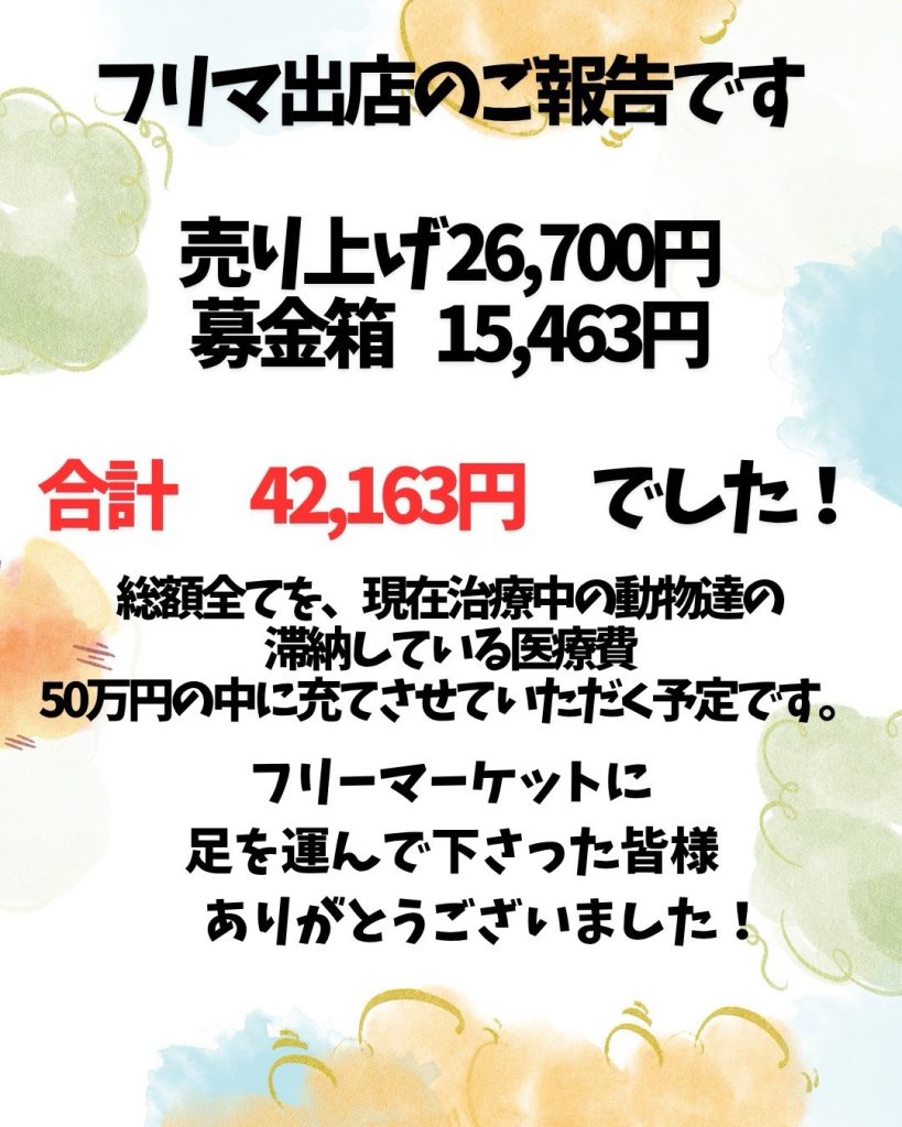 今回の売り上げ+募金総額ですが42.163円となりました!