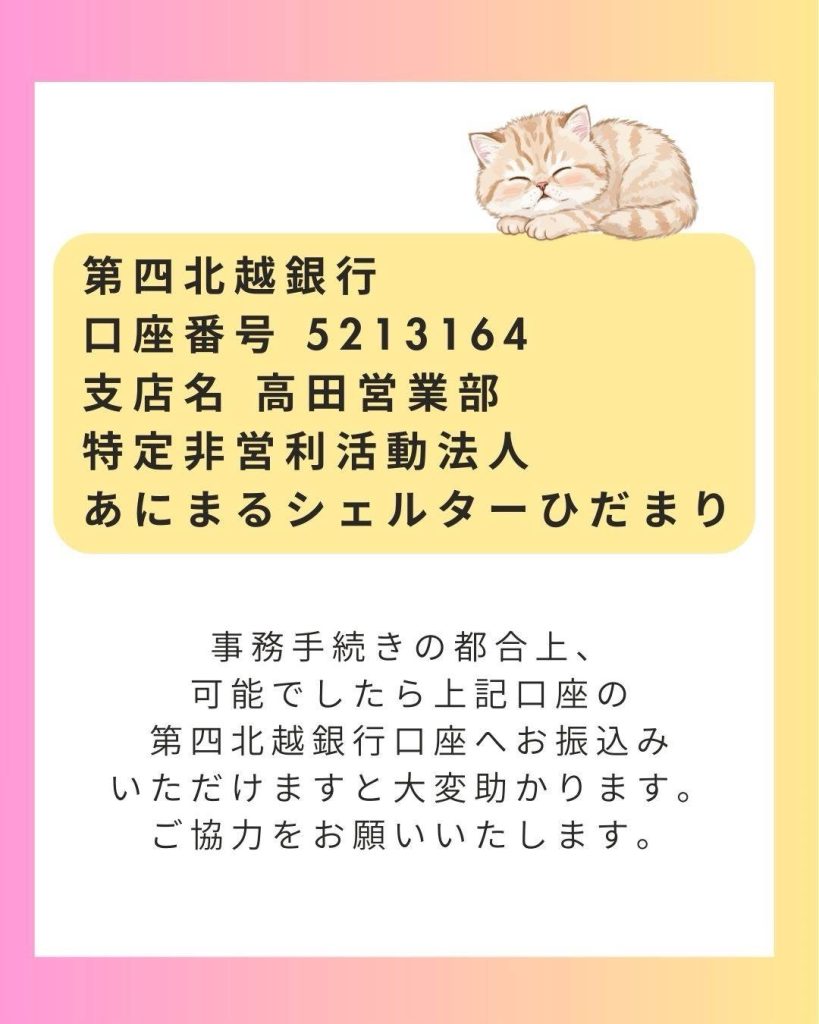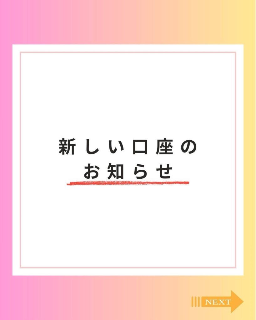 ご不便おかけしますが、今後はこちらの口座へのお振込みをお願いいたします。