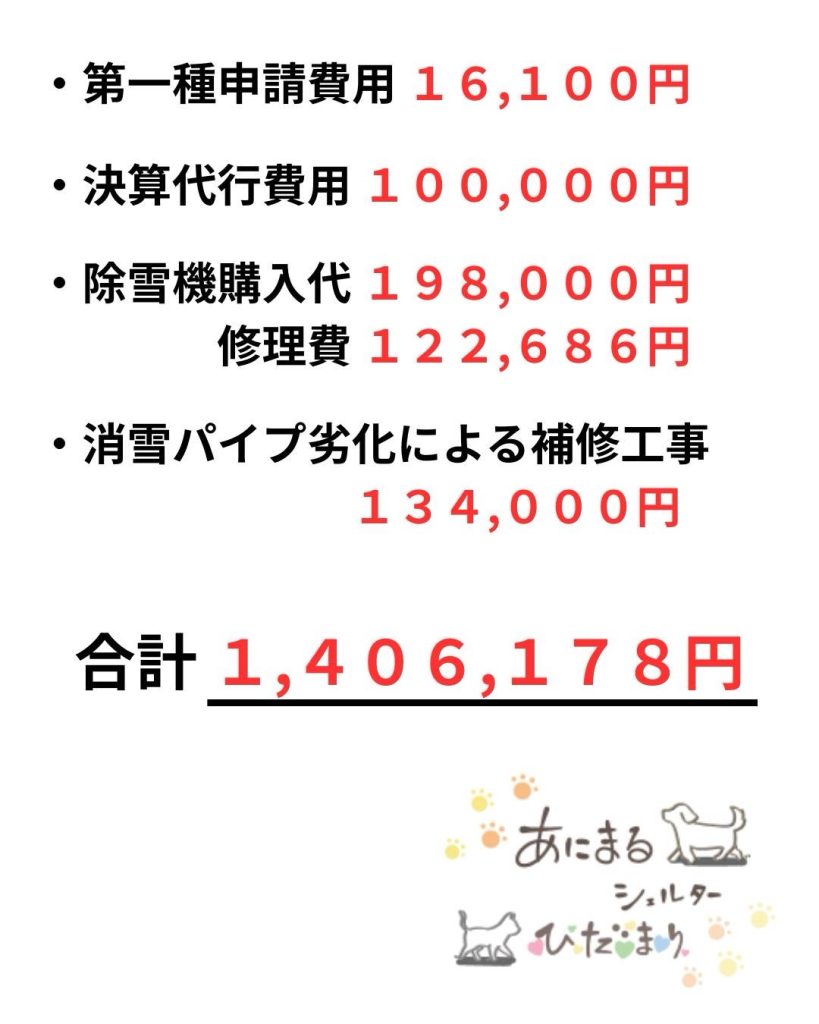 お預かりしたご支援金は全額、滞納分の代金の支払い·ご飯や猫砂などの物資·医療費などに大切に使わせていただきます。